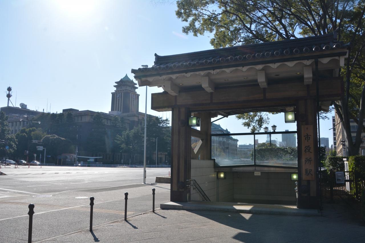 更に北に進み交差点を渡ると地下鉄市役所駅の出口に出ます。こちらは7番出口になります。名古屋城へ地下鉄で訪れる場合ここが一番近い出口になります。