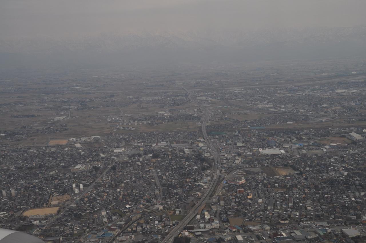 新潟県上空から下降して着陸