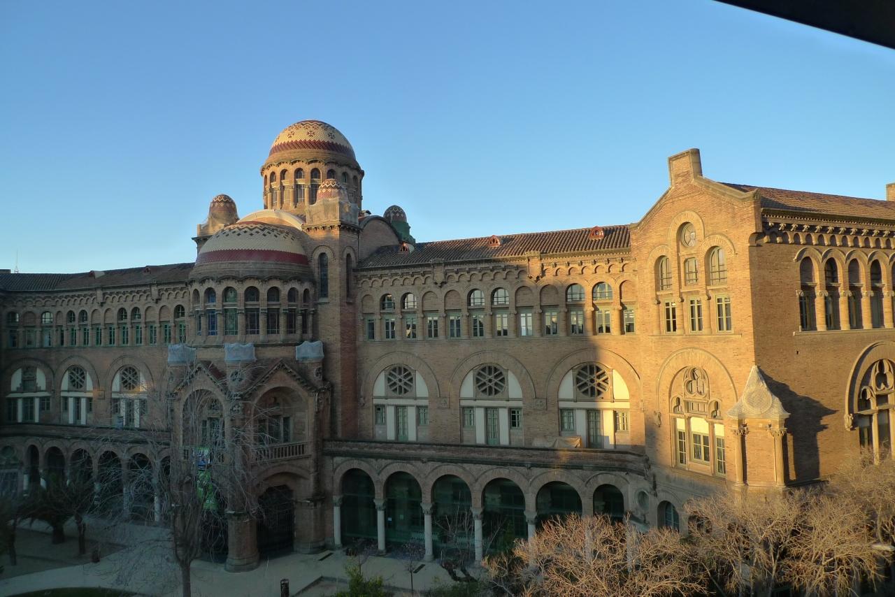 ガウディ通りを歩いてサグラダファミリアのライトアップを見に行こうとしたら、サンパウ病院の正面玄関の所に黒山の人だかりができていた。