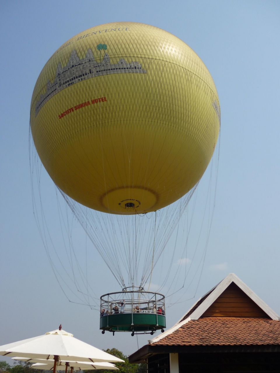 気球なら乗れそうということなので、ホテルからツクツクで往復10ドル、アンコールワットのそばの気球乗り場まで行くことにした。 -