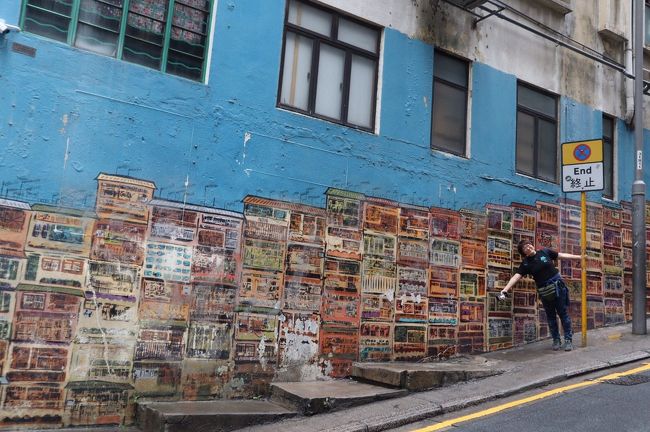 灰色の壁ばっかりだと味気ないだろうけど、ウォールアートがいい味出してて、足元の悪いし坂道続きの香港島も楽しくまわれました。
