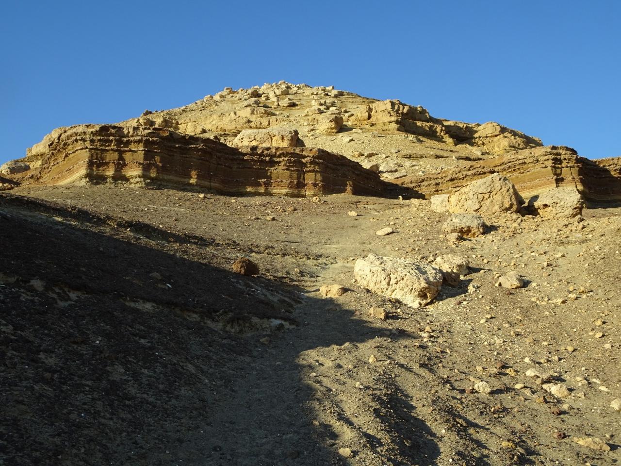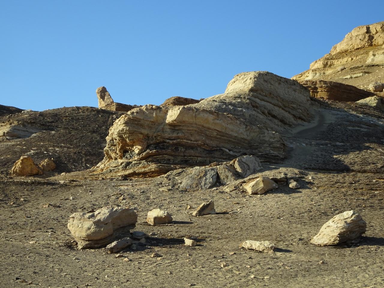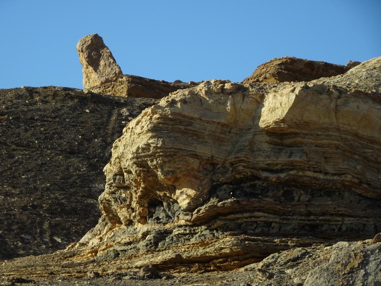 その手前には、地層が美しい切り崩しの岩があります。
