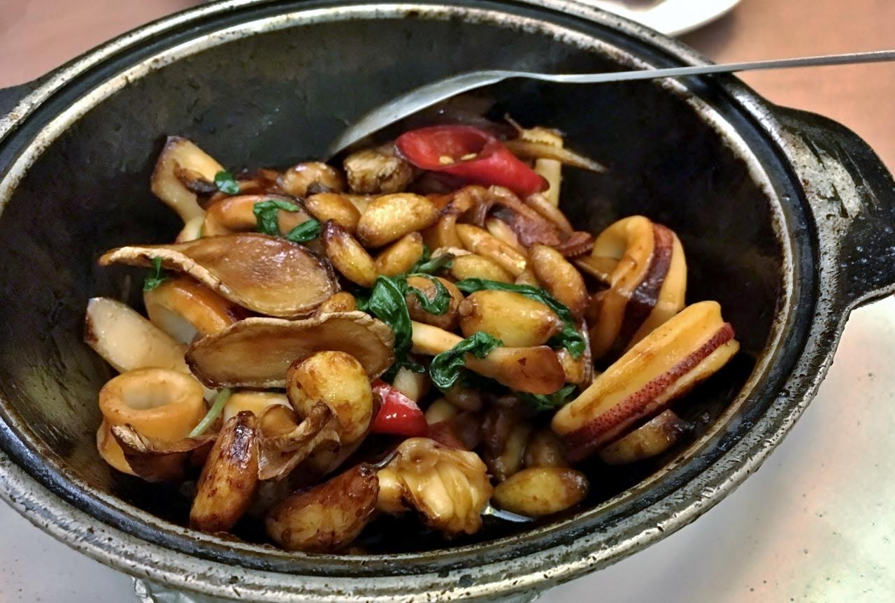 全般的にニンニクと唐辛子が効いて、ピリ辛。