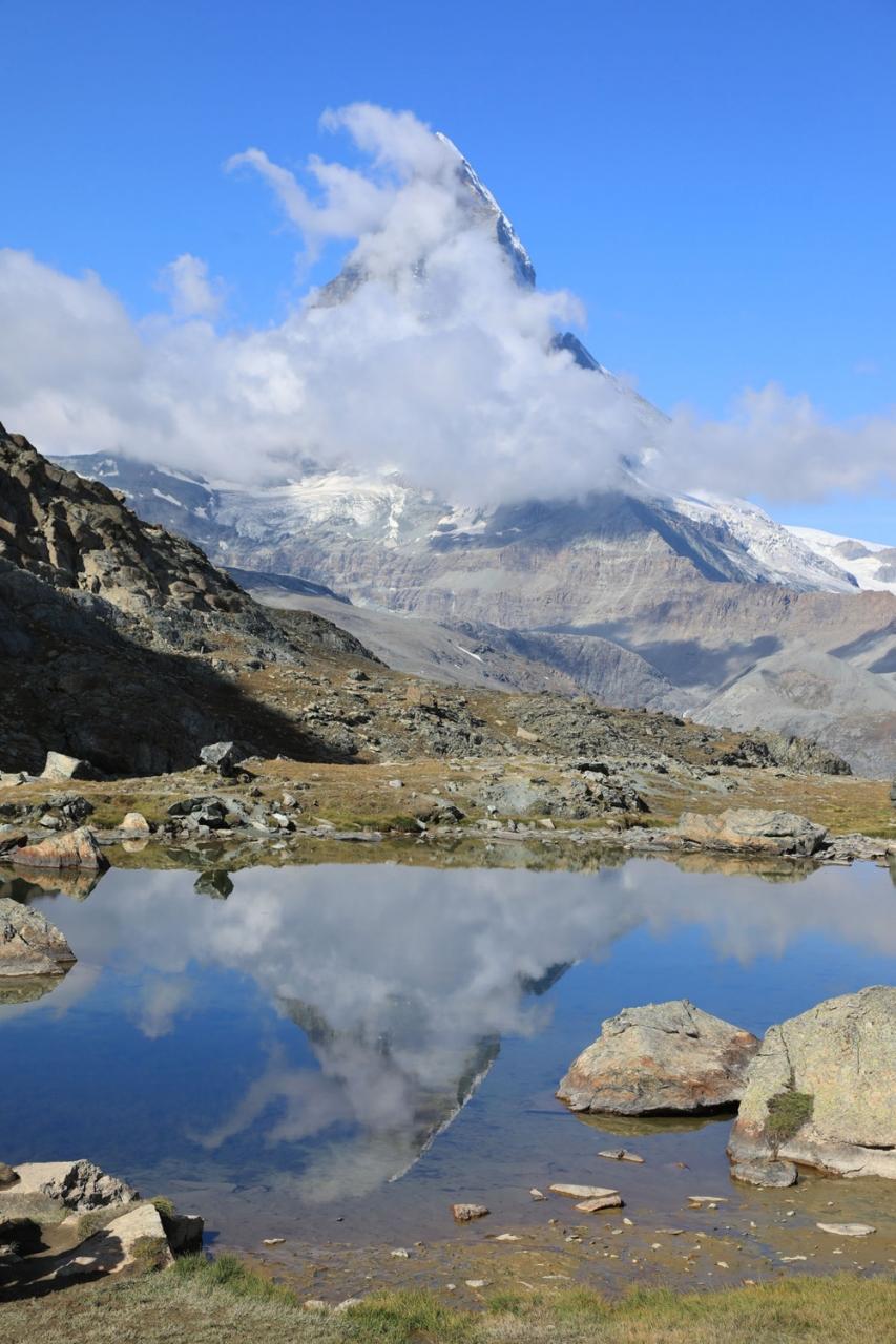 逆さマッターホルンはいいのですが、あっという間に雲が増えていっています
