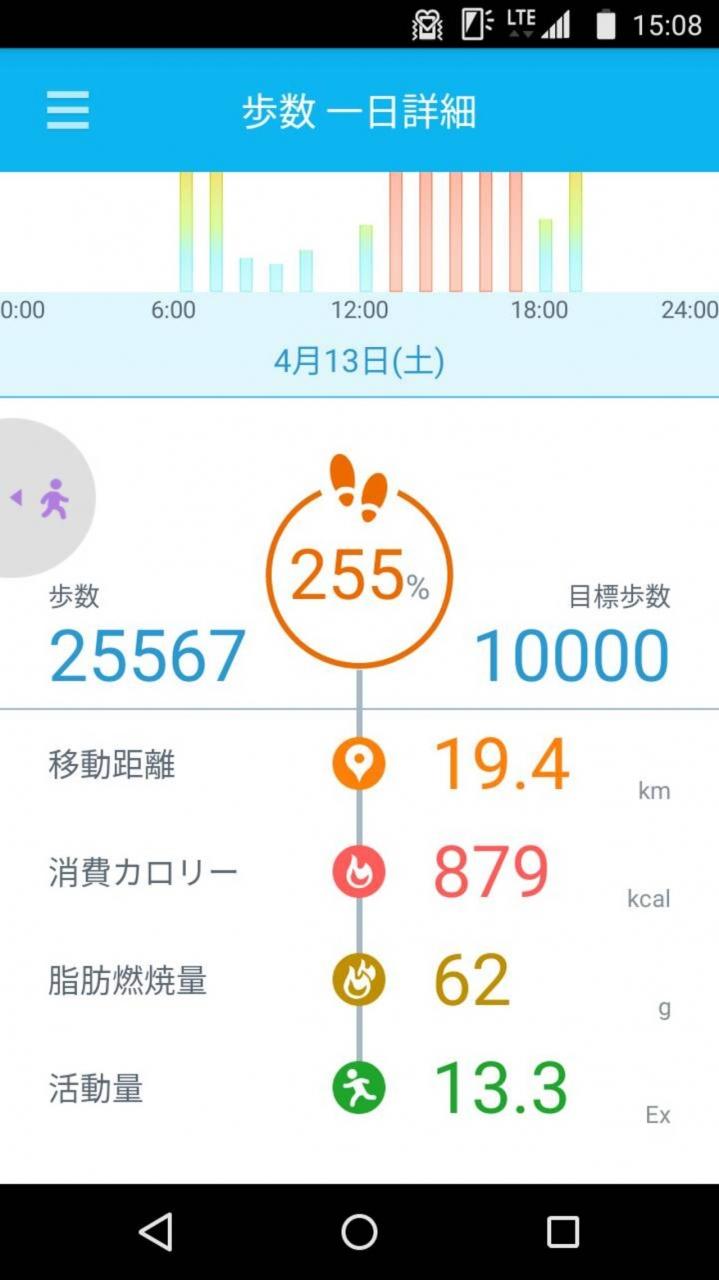 【04/13】本日の歩数25567~移動距離19.4km