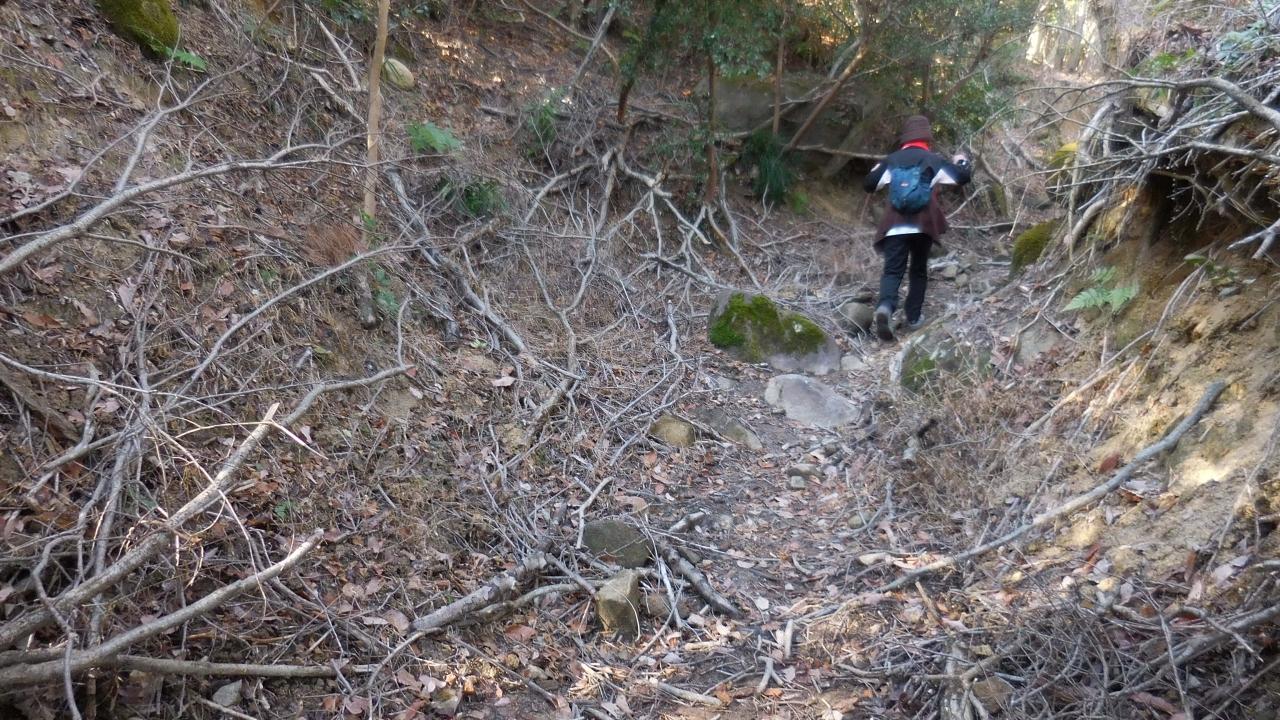 キツツキの音や、時にはイノシシの気配を感じる山道。