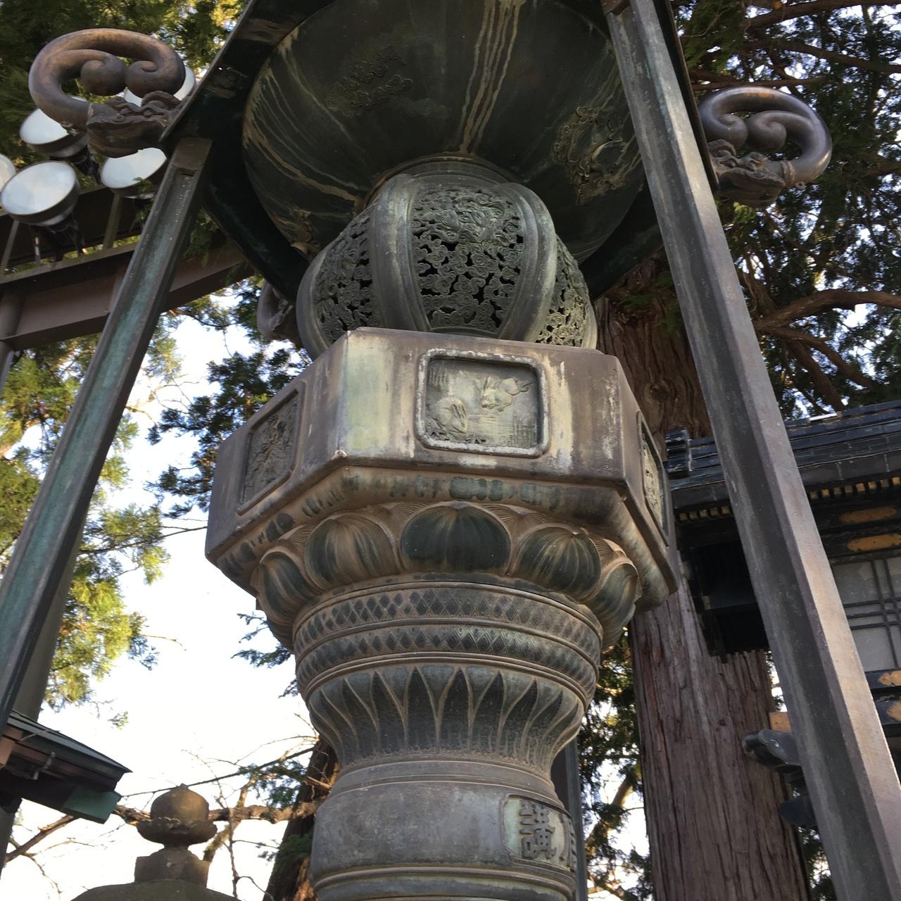 提灯の手前、金属製の大きな飾りが強風ですごく揺れてて怖かった。