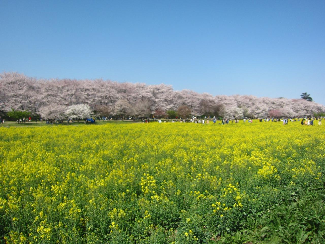 人は多いですが広いのでゆっくり見れます。以前来たときは桜も菜の花も満開だったと思いますが、曇りだったのでリベンジしました。写真は午後は逆光になると見たので午前中に行けてよかったです。