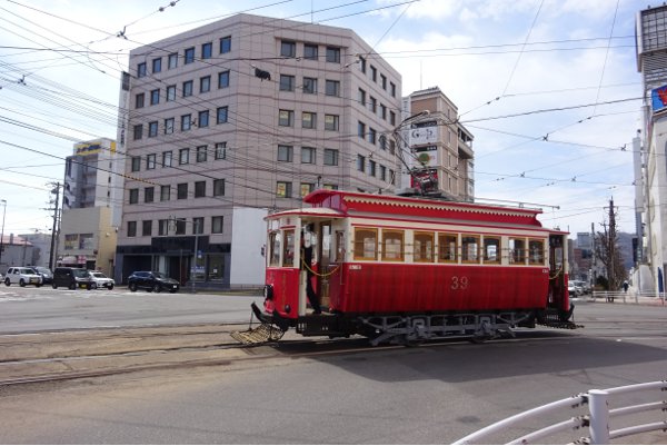 「箱館ハイカラ號」ですか。運転士は立って運転してるんだねぇ。 -