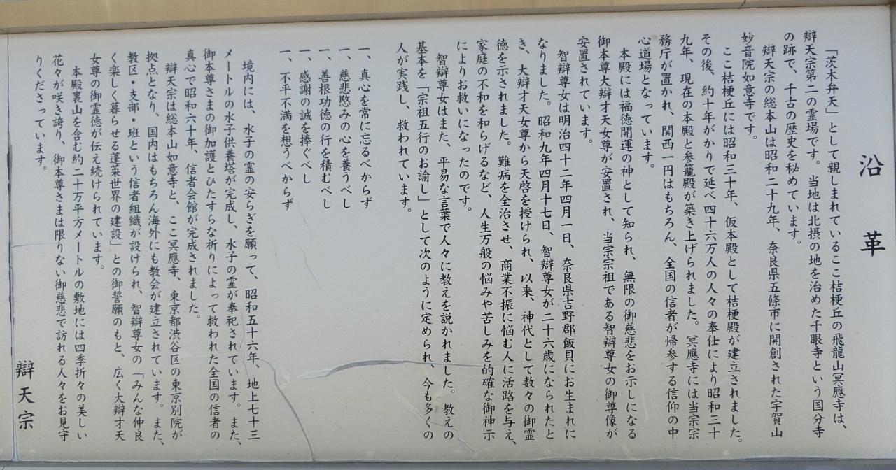 辯天宗の総本山は昭和29年、奈良県五條市に開創された宇賀山妙音院 如意寺です。