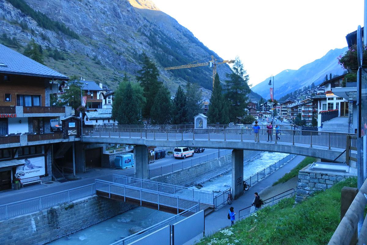 またまた、お決まりの日本人橋を通ってツェルマットの駅へと向かいます。荷物はホテルの来るまで運んでもらっているので、身軽に歩いて行きます