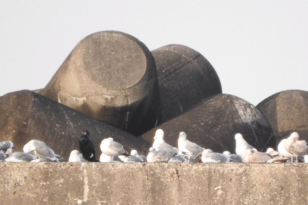 堤防の上には、セグロカモメ(背黒鴎)の群れが休息しています。