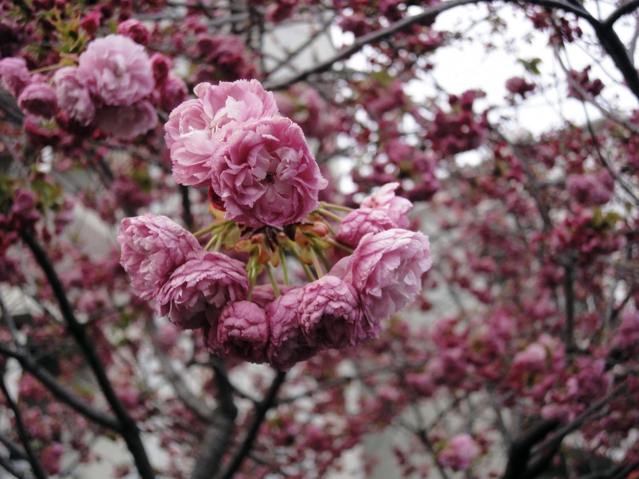 今年の桜、紅手毬。
