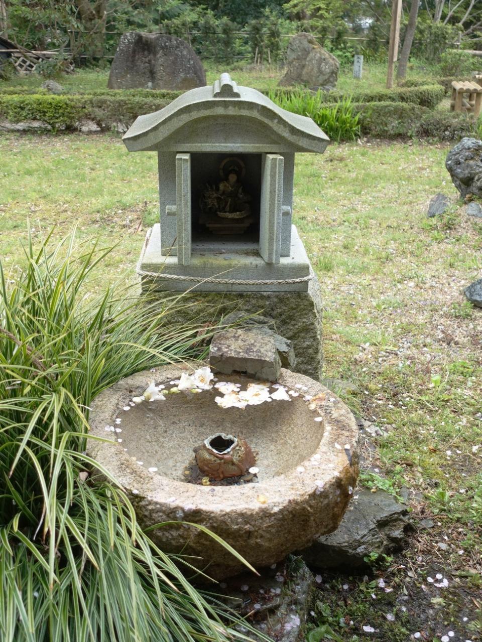 本館の左手には護摩堂。この間の小道の先がお庭です。