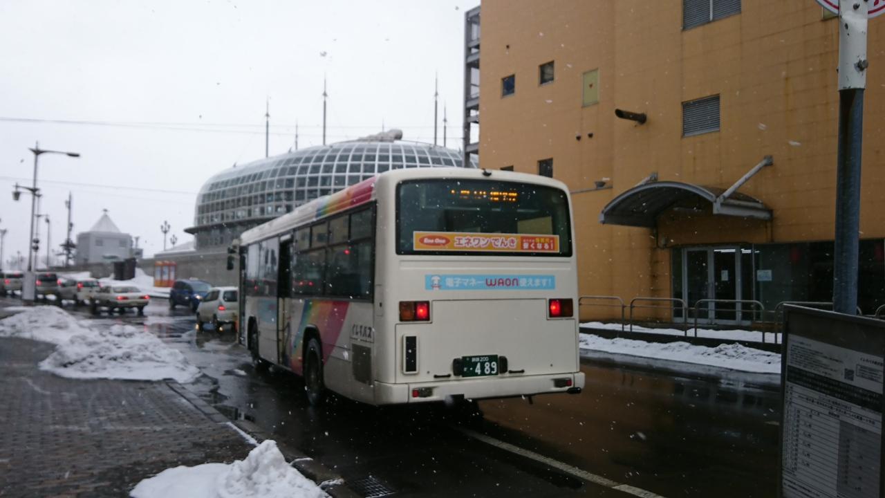 ハズを待ちながら観察。くしろバスの鶴のデザインはなかなかです。