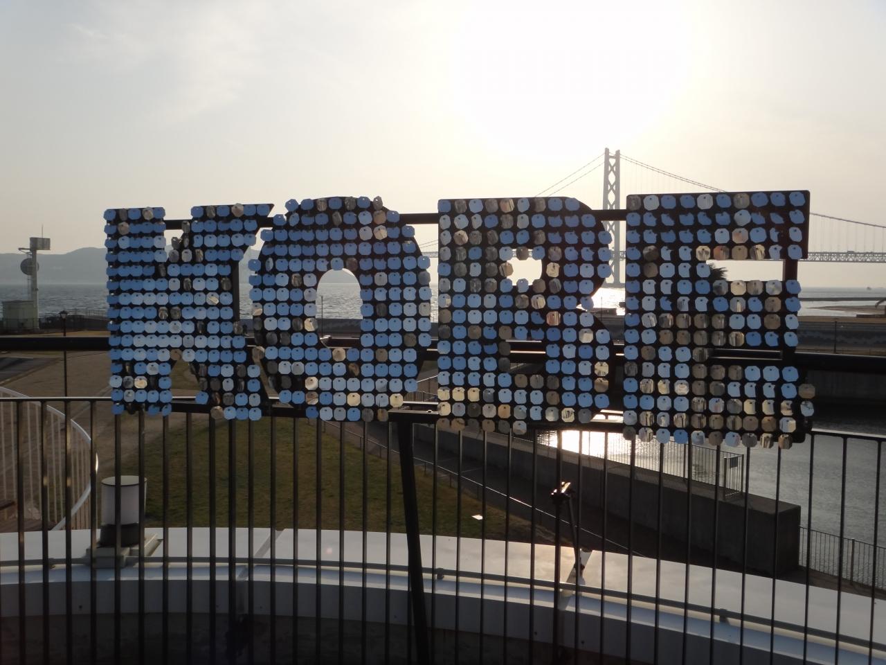 明石海峡をバックにKOBEのサイン。