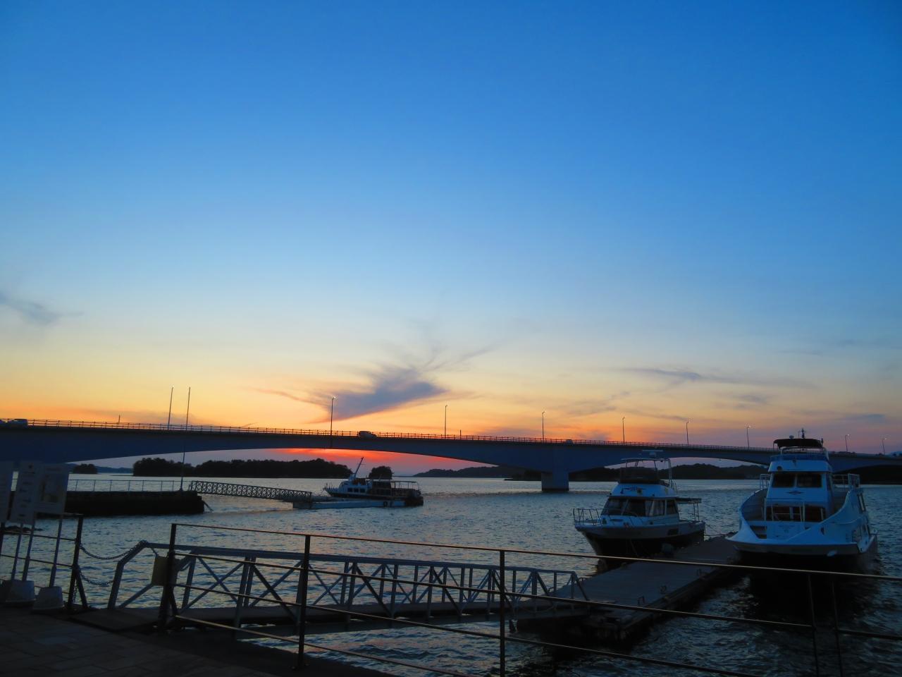 四号橋の向こうに日が沈むプレートカフェリゾラ グルメ・レストラン