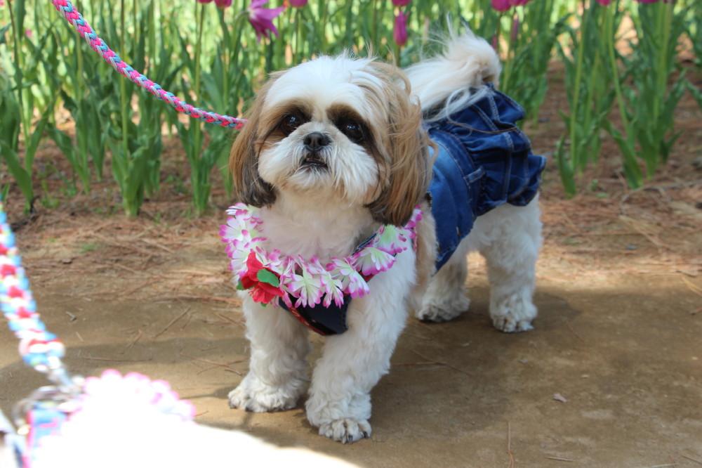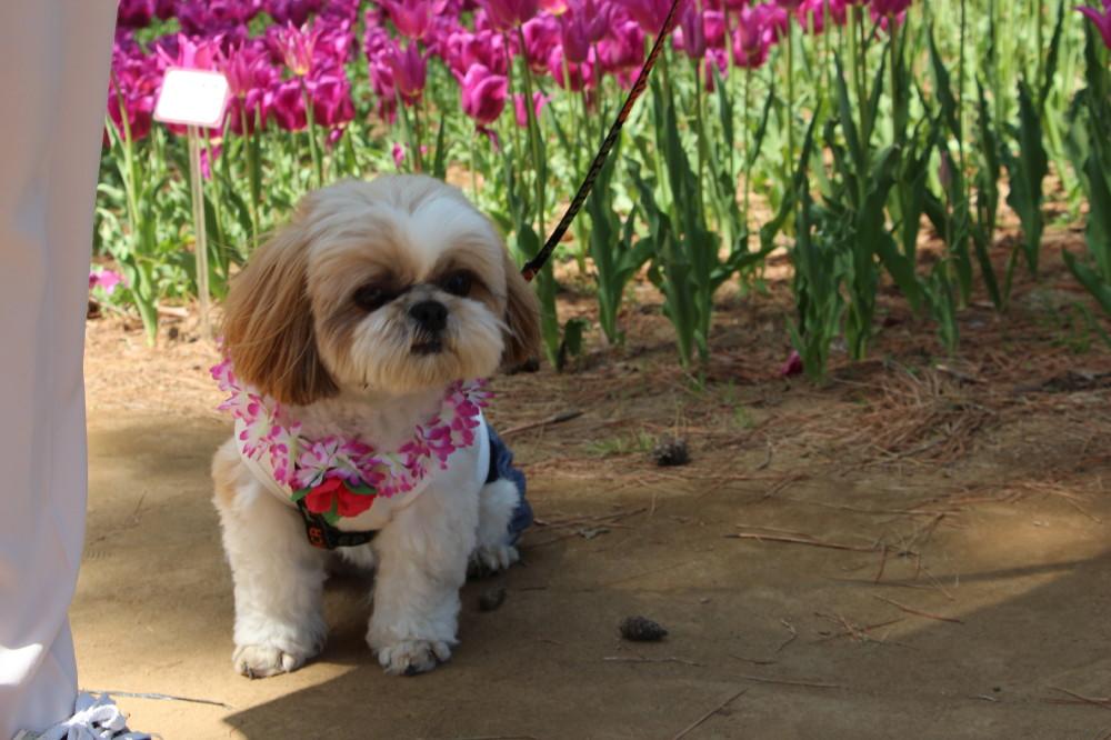 チューリップを撮影していると、3匹のシーズーを発見です。