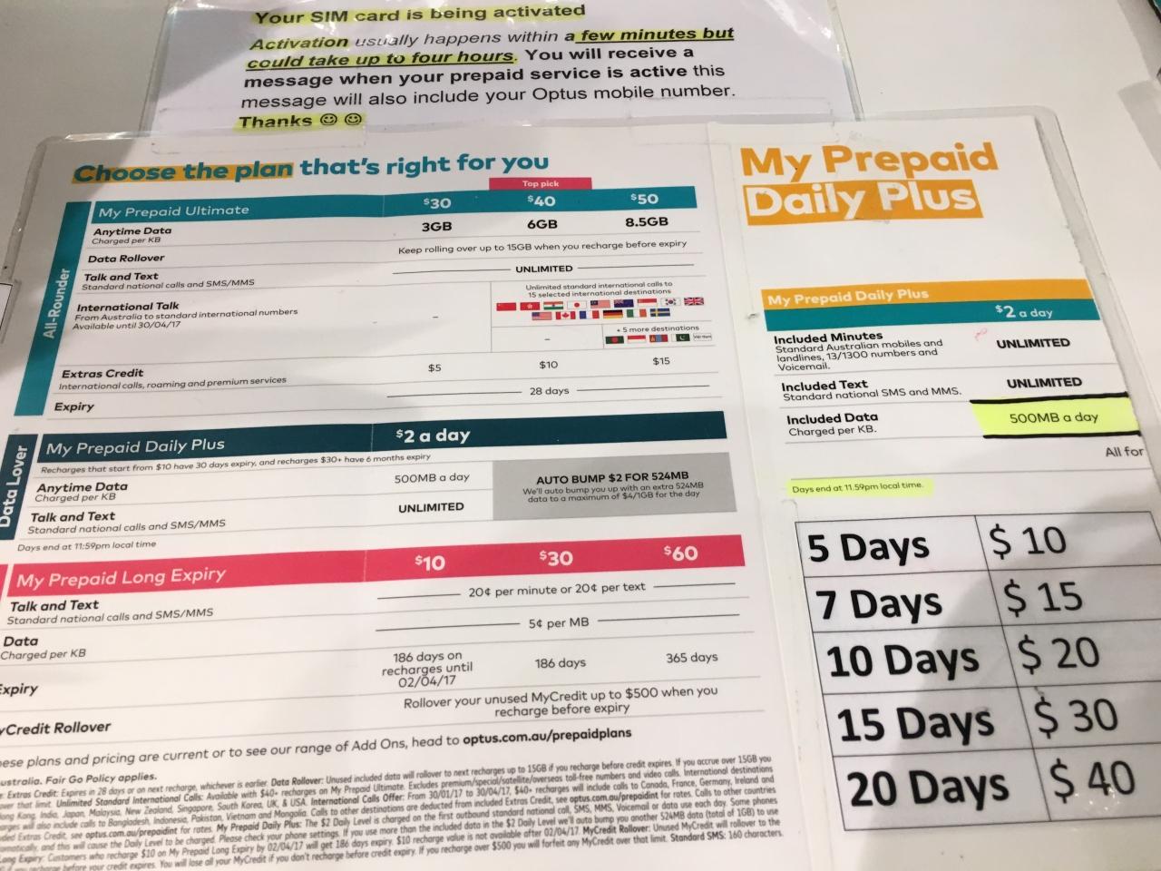 オーストラリアの厳しい税関を通過して(食べ物は持ってません!等)、何は無くとも今回の命綱のSIMカードを調達しないと。OPTUSでプリペイドSIMを買います。