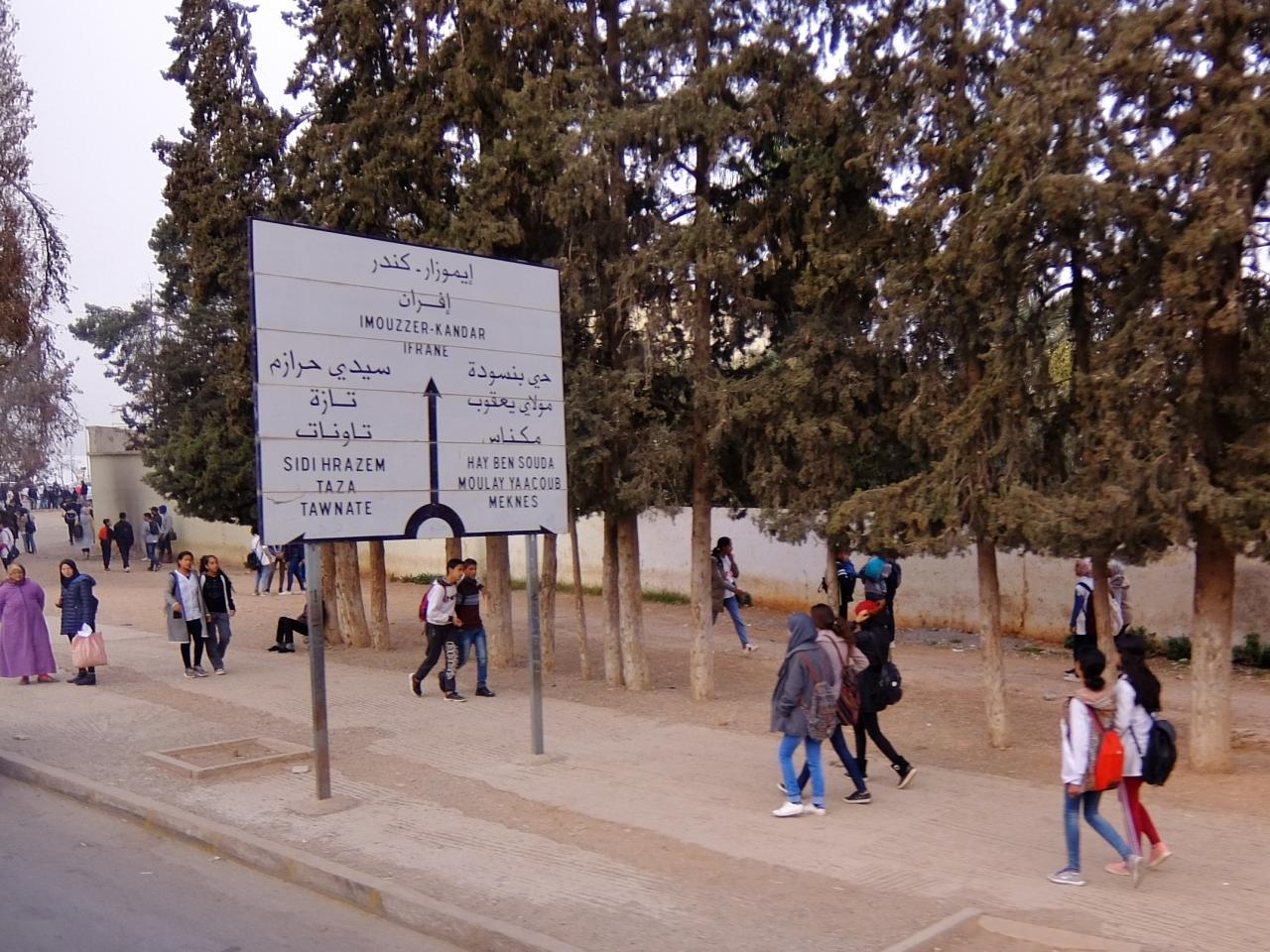 直進するとイフレン、右に曲がるとモロッコ最大のローマ遺跡があるメクネス。 -