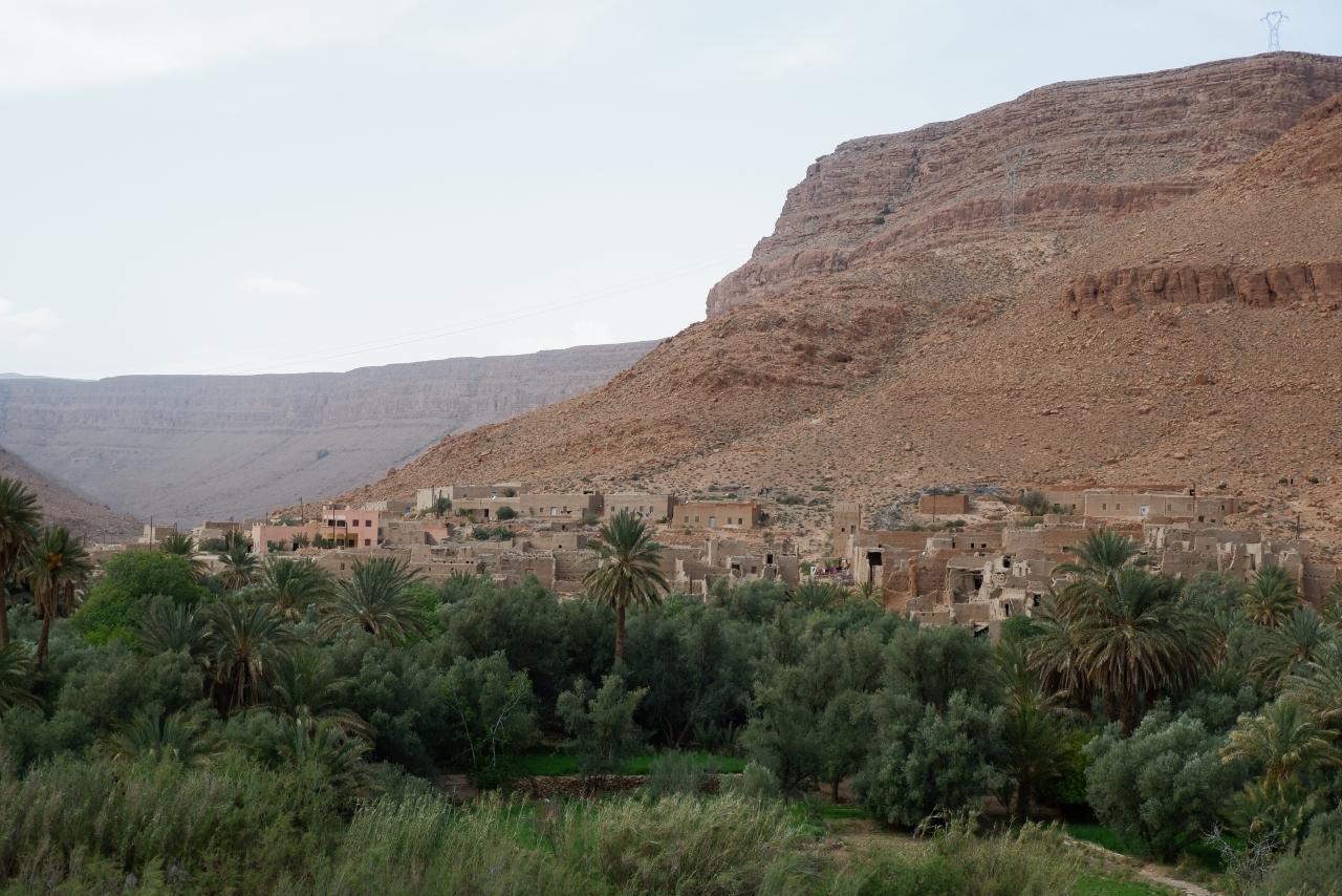 オアシスと言ってもズィズ川の流れによって植物が帯状に繁茂している地域。 -