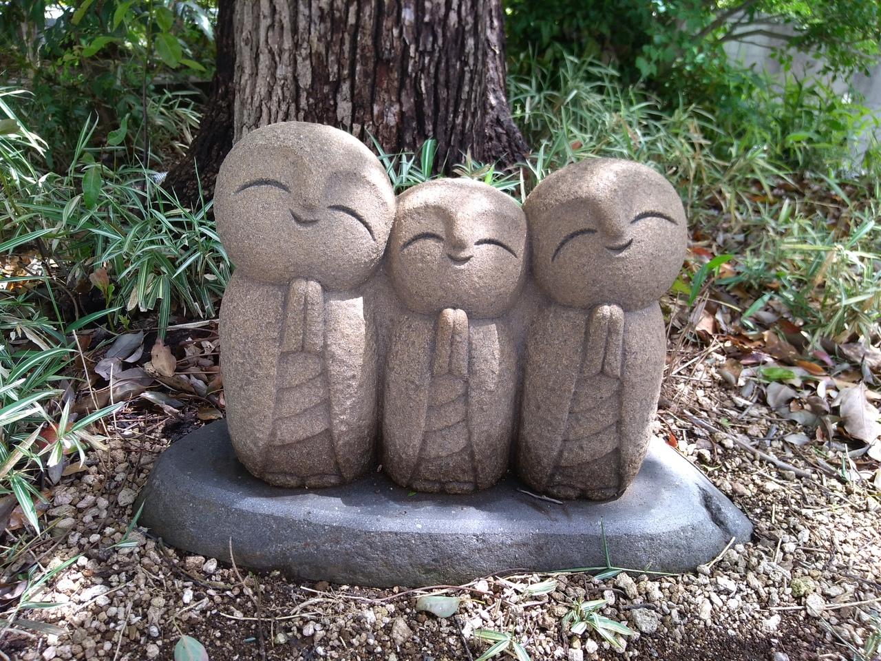 曲がり角の東長寺近くに可愛らしい三体のお地蔵さんがいました。