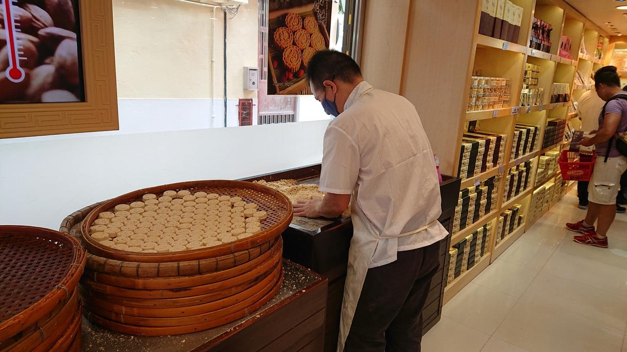 お土産やさんの片隅ではおじさんがアーモンドクッキー?を作っていました。