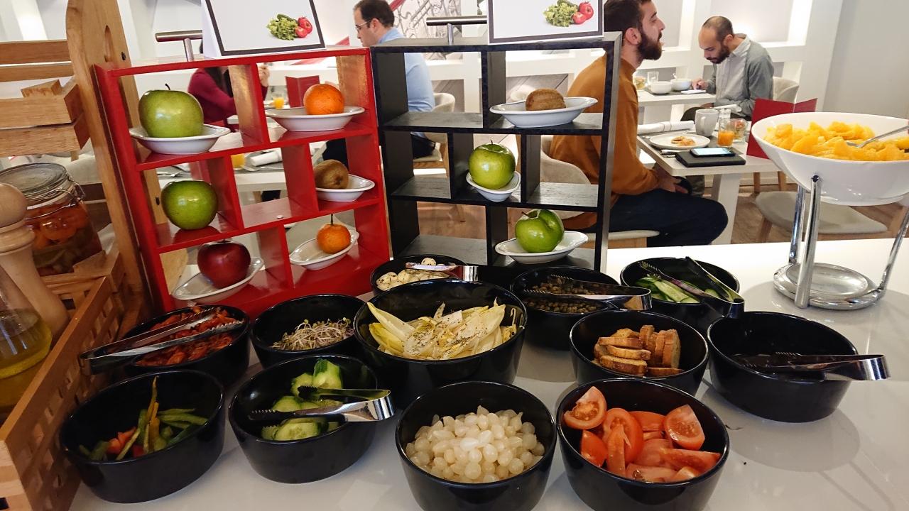 ビュッフェの品揃えは、アムステルダムのホテルと同じ「NH」系列のため十分な内容になっていました。 -