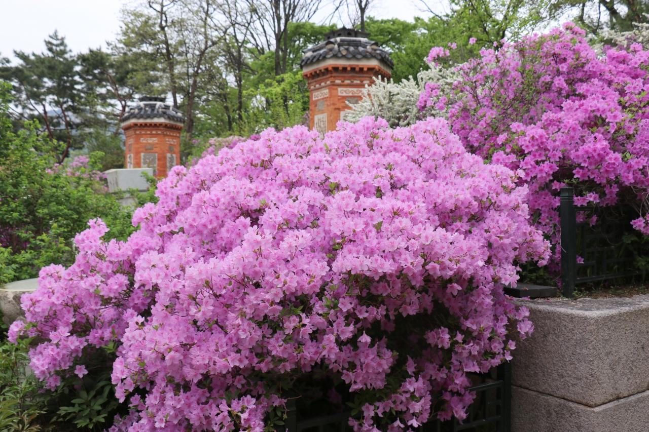 交泰殿の裏には峨眉山と呼ばれる階段式の庭園が造られていて、ツツジが綺麗に咲き誇っていました。