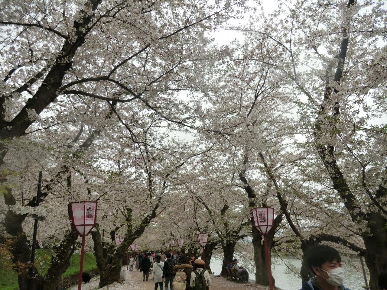 北上川に沿って咲き誇る役2キロの桜並木の下を歩く