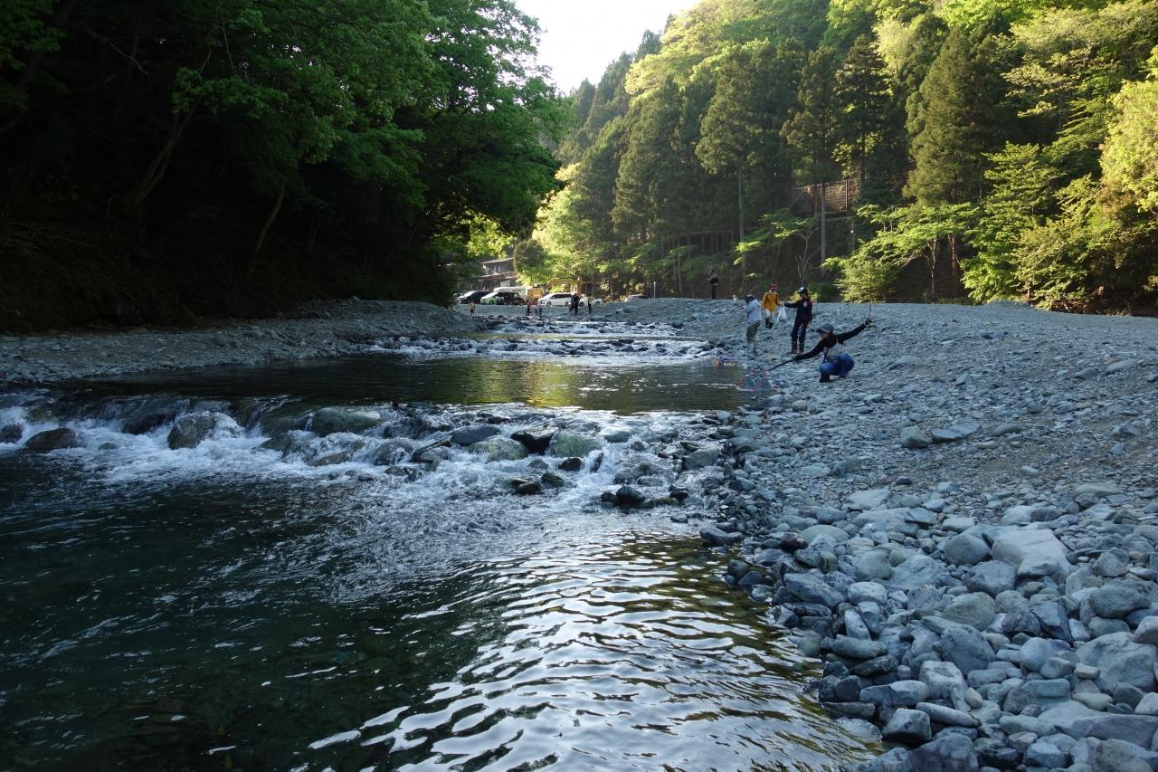 ずっと先の更に下流に先程まで釣っていたフライ、ルアー、テンカラの事務所があります -