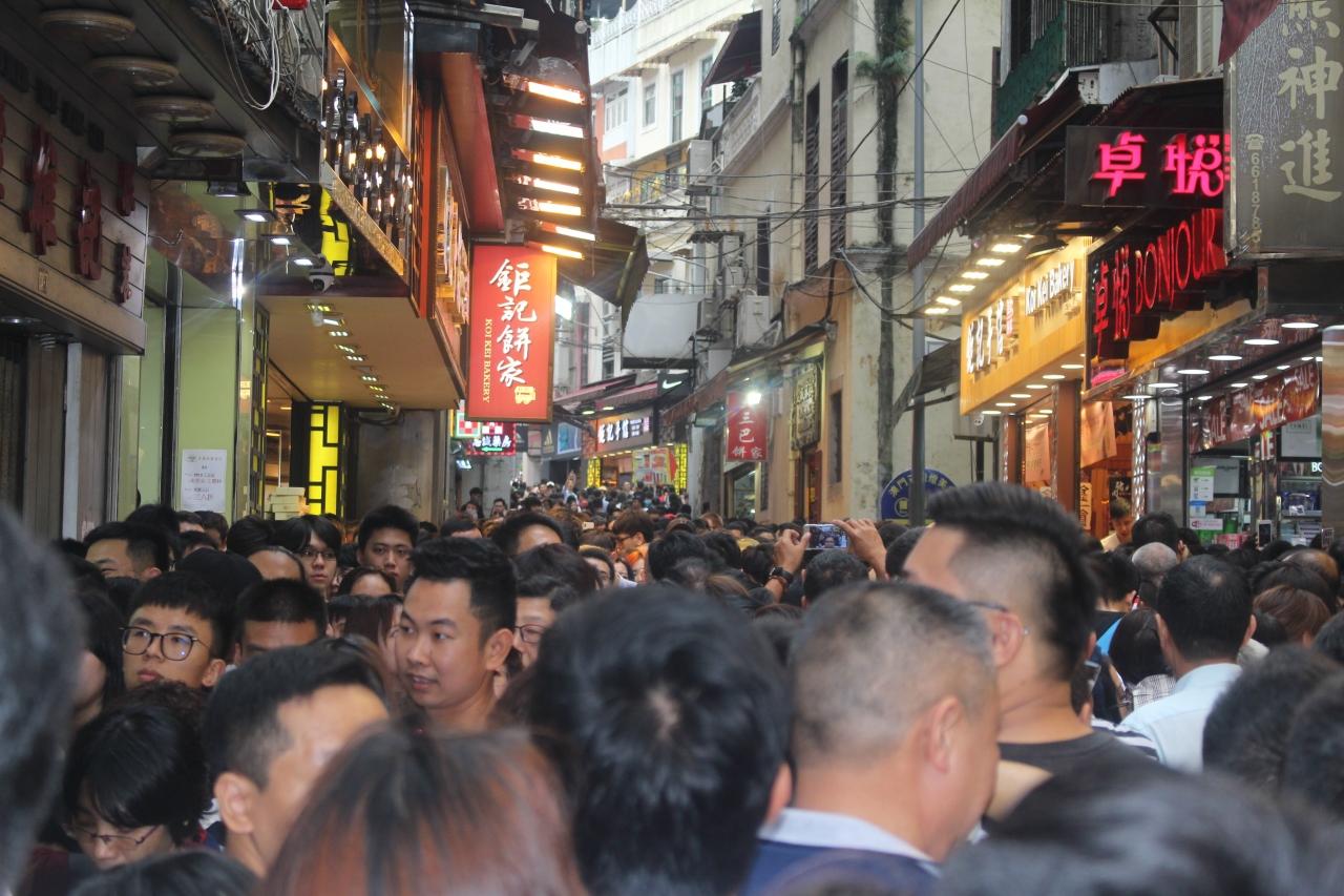 とにかく人が多かったので、早めに聖ポール天主堂跡に向かおうということで、セナド広場から一番近い道を進んで行ったらこんな状態で全然前に進めない…。