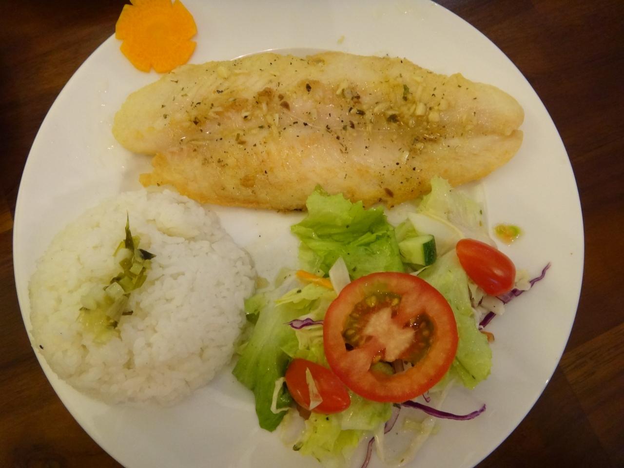 白身魚のバターレモンソテー。ライスなところがローカルチックだけど、なかなか美味しかったです♪