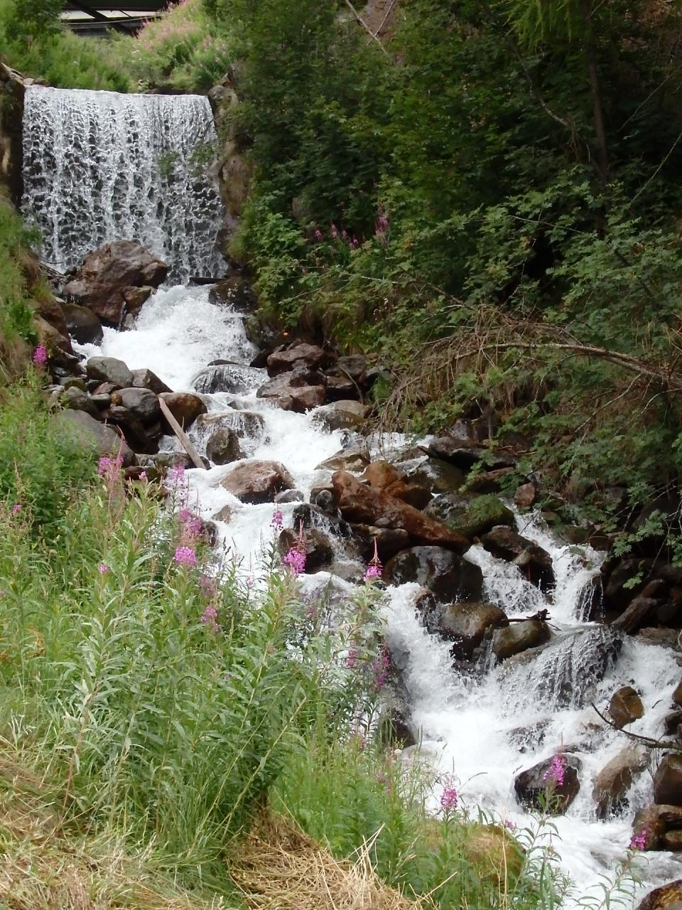 セルデンの町並みを見渡せる小高い丘へ登ってみました。滝があり、お花が咲く長閑な小道が続いていました。