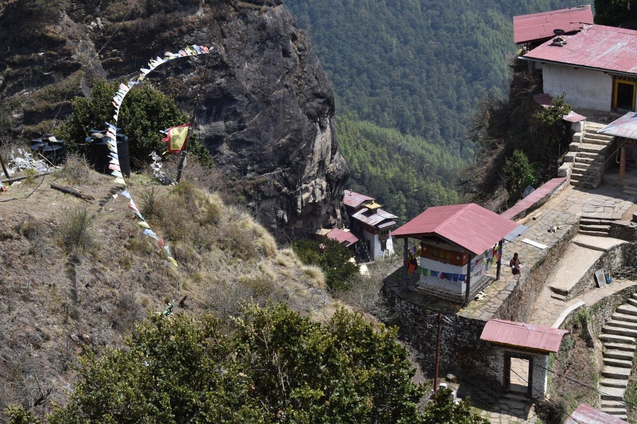 毎日何百というブータン人と外国人観光客(インド、ネパール、バングラなどSAARC加盟国を除くと、最近は中国人がトップ)がお寺目指して上がってくるのに、セキュリティ、人の安全の面で(火事、転落事故、登山道の荒廃)したいことは山ほどある。お布施もたくさん上がるので、資金的にできないことはない。ところが、何かしたくても決定するのは、国の予算から県の予算へと降りてきての決定なので、お寺に決定権がないのだそう。昨年はタイ人が崖から落ちてなくなったそうだ。(10年前にはなかった手すりができており、バターランプの小屋も撤去され別のところに移動したとのこと)
