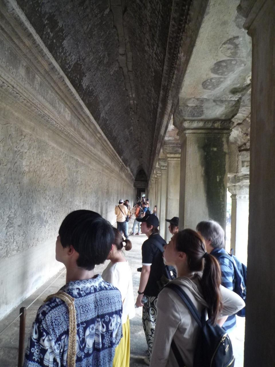 回廊、こちらは屋根があり壁一面にレリーフがあります。