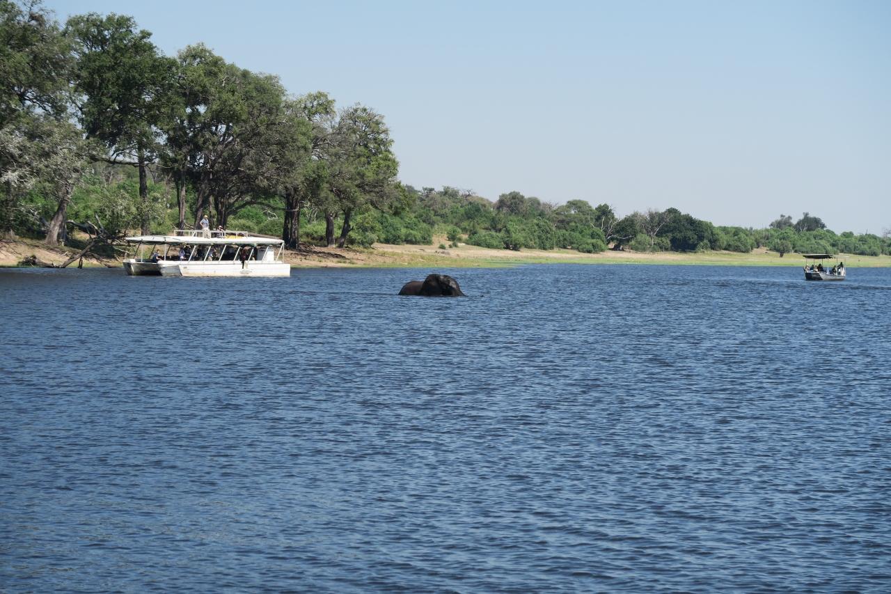 - 私も1日違いでチョベ国立公園にいました。ボートからは中米で野鳥中心にウォッチングしましたが、野生動物は初めてで感動しました。特にゾウがほぼ全身水に浸かりながら川を渡っていく様子は見ごたえがありました。