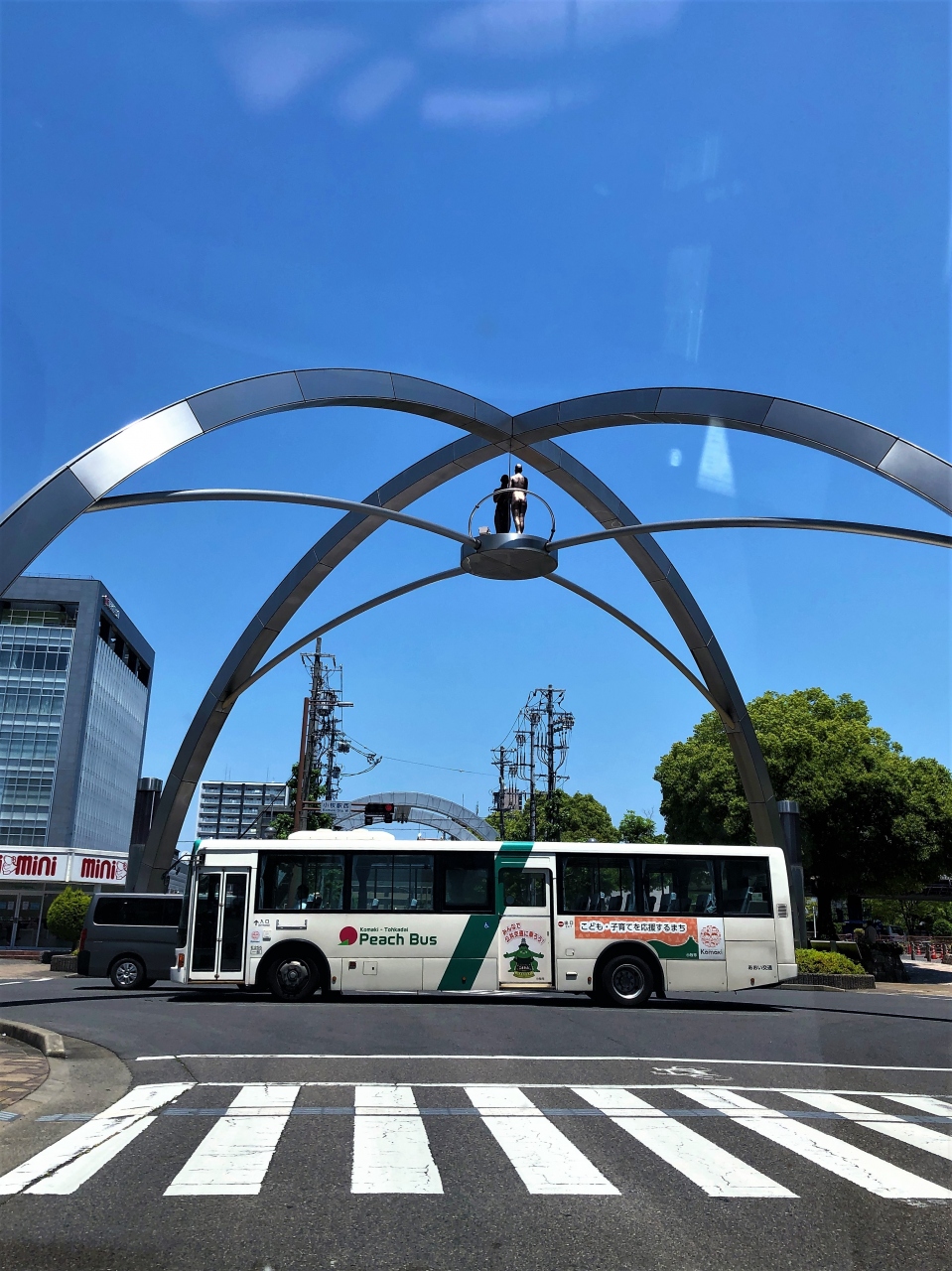 走り始めて間もなく名鉄小牧駅の入口にある大きなアーチ形のモニュメントが目に入ります。正式な名称や謂れなどは不明ですが、この界隈には多くのモニュメントが作られていることを知り、機会があれば是非見てみたいと感じました。そして小牧上新町・小牧東田中・小牧岩崎局と小牧市内を進むと犬山市に入ります。楽田局だけが犬山市となりその後は小牧池之内・小牧古雅と立ち寄った後にピアーレ桃花台というこじんまりとしたモールに立ち寄ります。施設内に小牧桃花台局があるからなのですが、アピタを旗艦店とするモールの規模になんとなく違和感を感じてしまいます。実はこの辺りには平成18(2006)年まで第三セクターの桃花台新交通桃花台線が運行されていました。桃花台ニュータウンの人口増加に対応するべく開業したようですがニュータウン・利用客とも伸びることなく赤字が続き、僅か15年で廃止された幻の交通機関だったようです。昼間であればモールの利用者もしれており、利用客が伸びないのは容易に想像できたようにも思うのですが時はバブル期真っ只中そんな考えを持つ方がおかしいとされていたのでしょう。新交通システムの廃止により使われなくなった駅舎もその後の処分がなされず立入禁止となったまま残っている現状にバブル期の哀愁漂う遺構だと感じたのは私だけでしょうか?