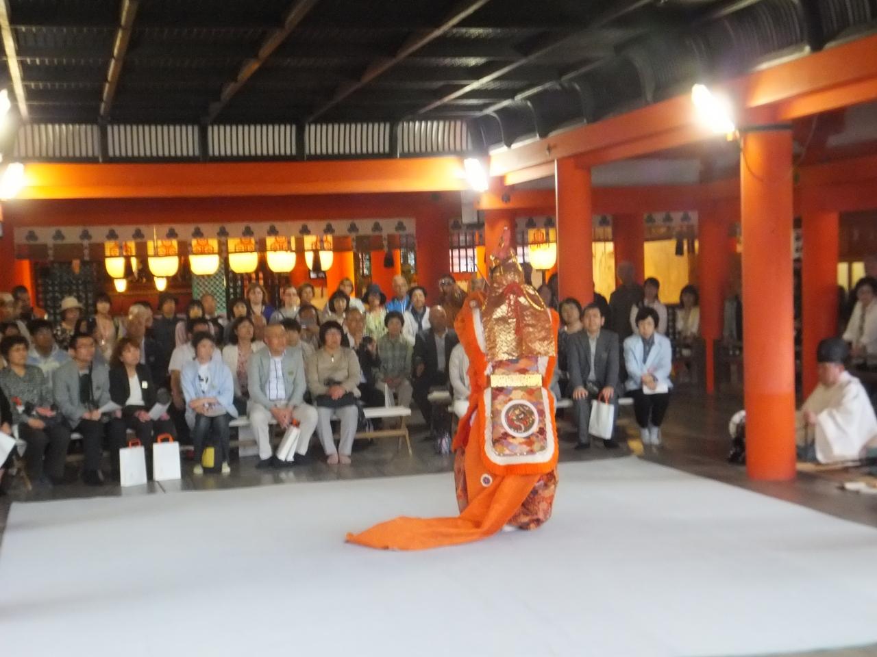 厳島神社では、ちょうど客社祓殿で能の舞が行われていました。