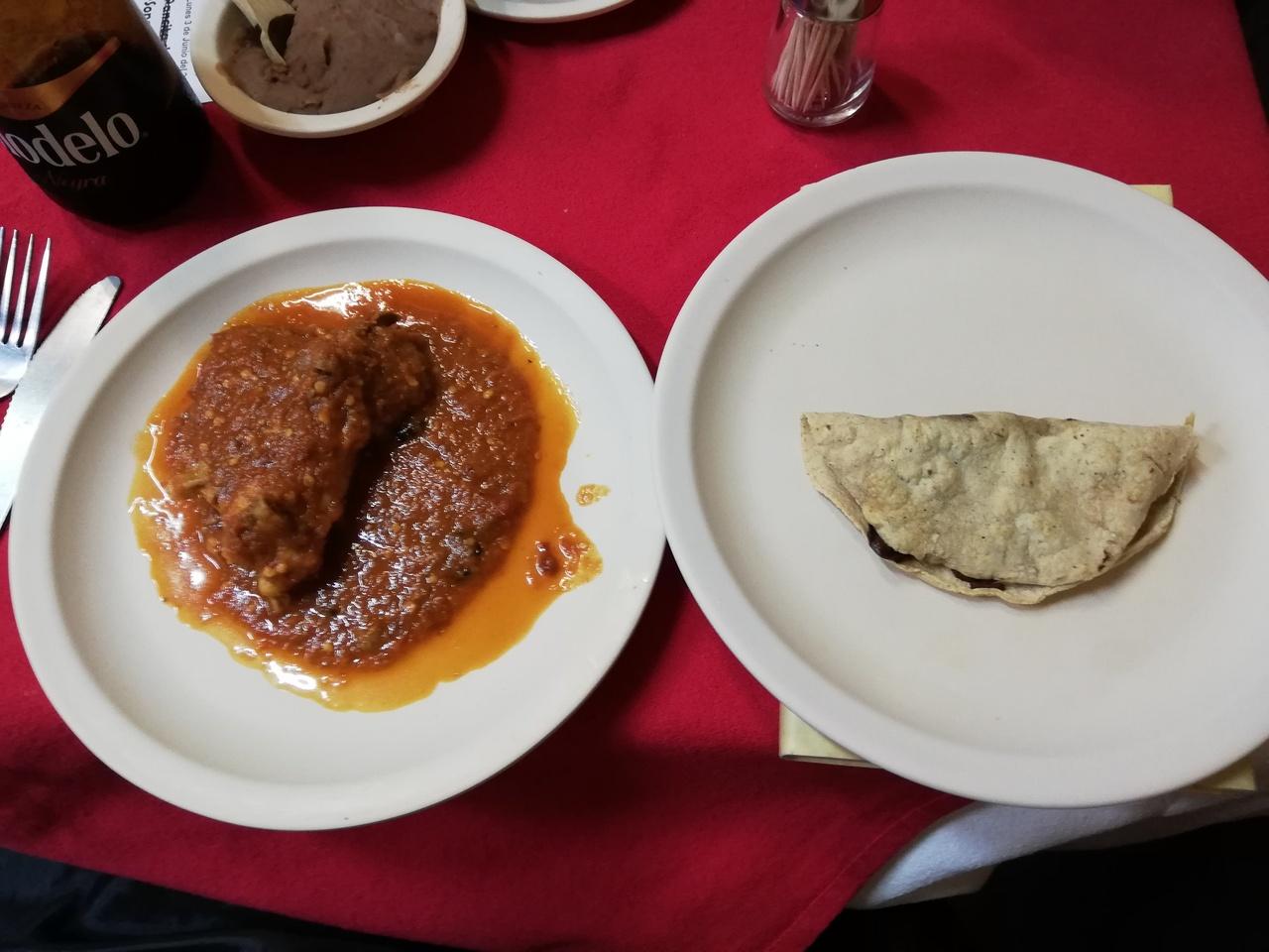 モレソースのかかったチキン。甘い八丁味噌みたいな味。私はパス。