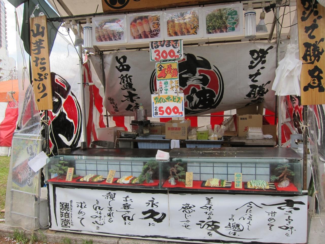 天満橋の駅方向に戻るには、出口付近で右に折れ、屋台のある公園を通っていく必要あり。屋台を見たり、食べたりも楽しい~。