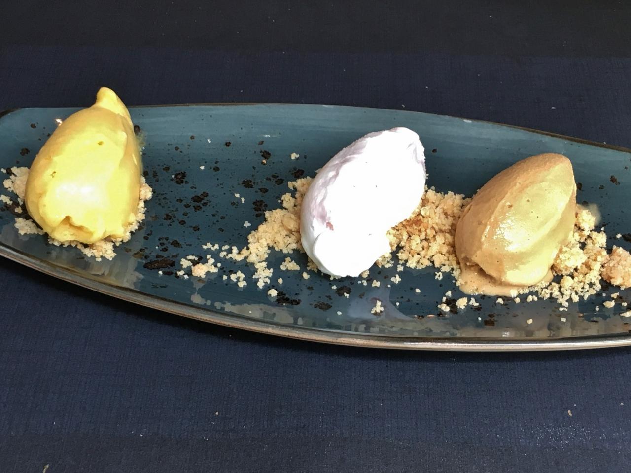 ランチは前菜とメイン、デザート (お水とパン付) で19.5 ユーロのコースがあり、4種類から選択できます。前菜はイベリコ豚のカルパッチョです。