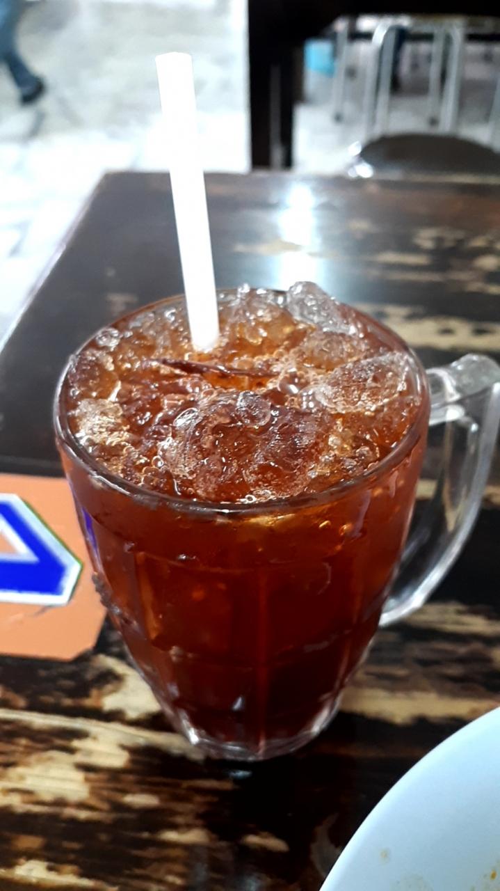 タイの甘いアイスティーとカオソーイ・ガイ(鶏肉)で60B也。