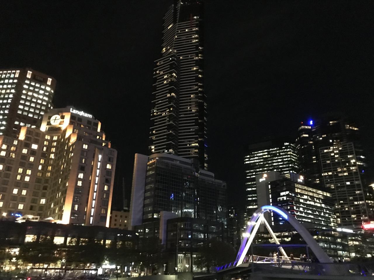 メルボルン中心街をヤラ川を渡りつつ見渡します。