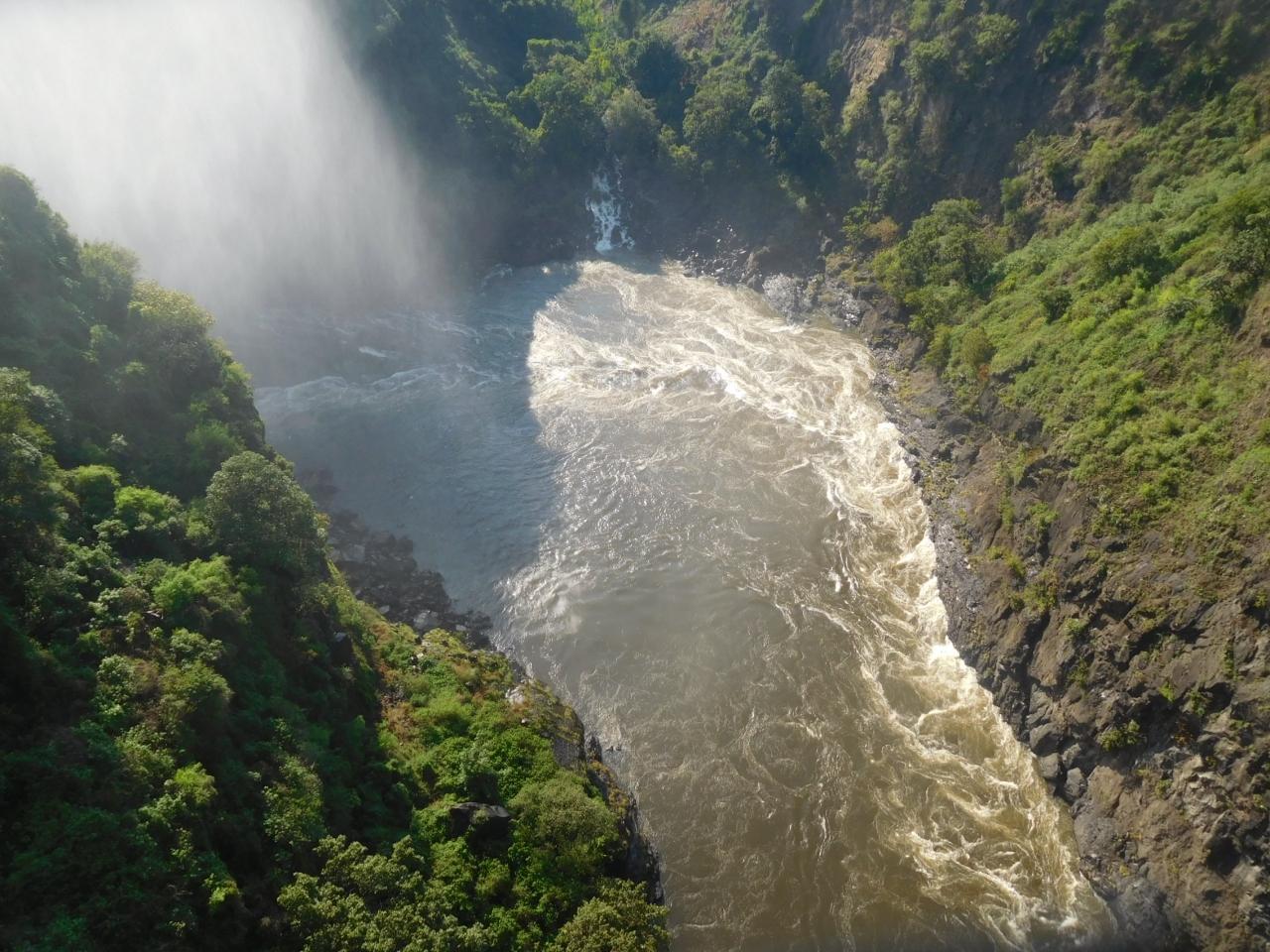 振り返ると、如何に滝の巨大さ、ド迫力がわかります!滝の数はイグアスの方が圧倒的に多いですが、巨大さ、凄まじさはこの時期のビクトリアフォールズはイグアスを凌駕している感じがします!