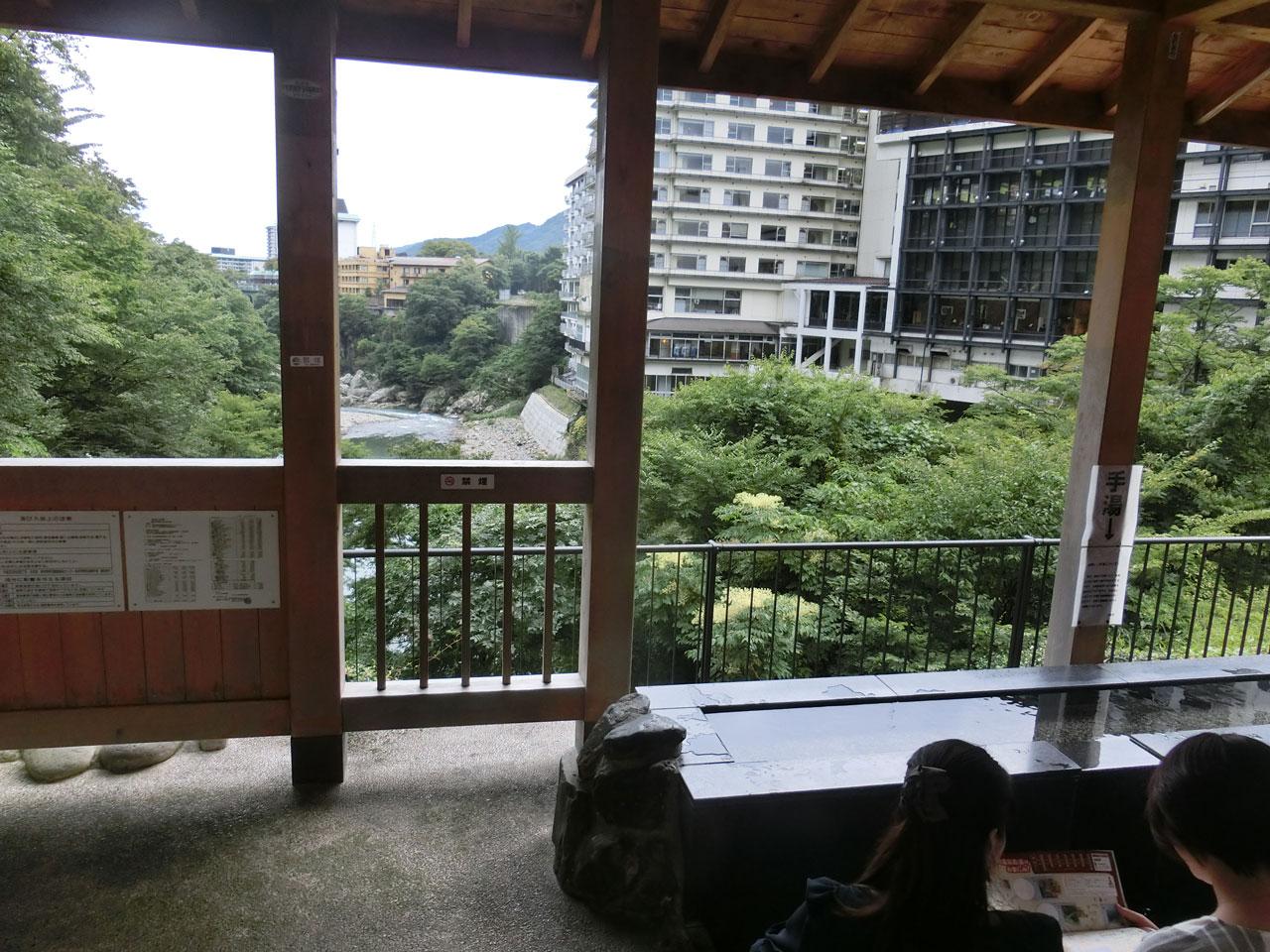 足湯から泊っているホテルが見えます