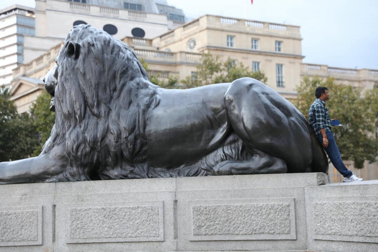 トラファルガー広場の中心にあるネルソン提督記念柱は、1805年のトラファルガーでの、ナポレオン率いるフランス軍との戦いに勝利した記念として建てられた。その台座の大きなレリーフには、彼が活躍した4つの海戦が描かれており、これはフランス軍の大砲を熔かして造られたそうだ。その四方を囲むライオン像は絵葉書などでもお馴染みである。