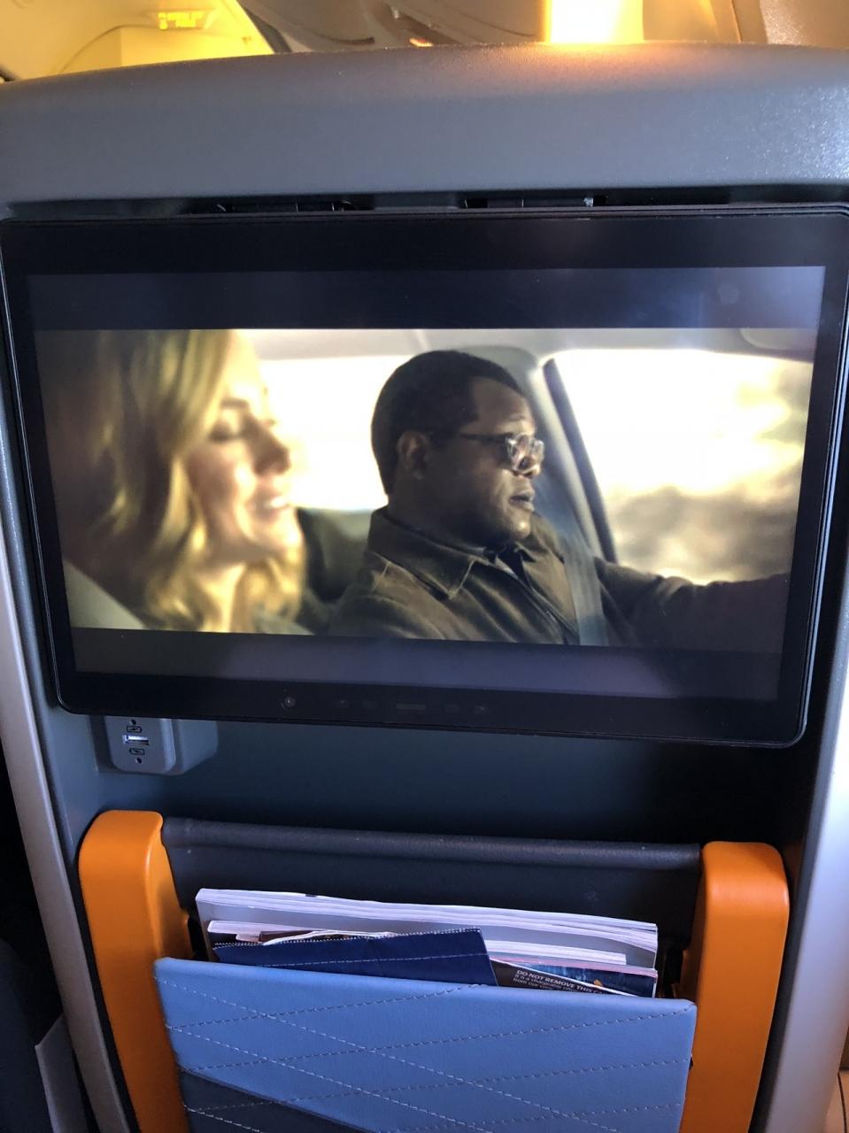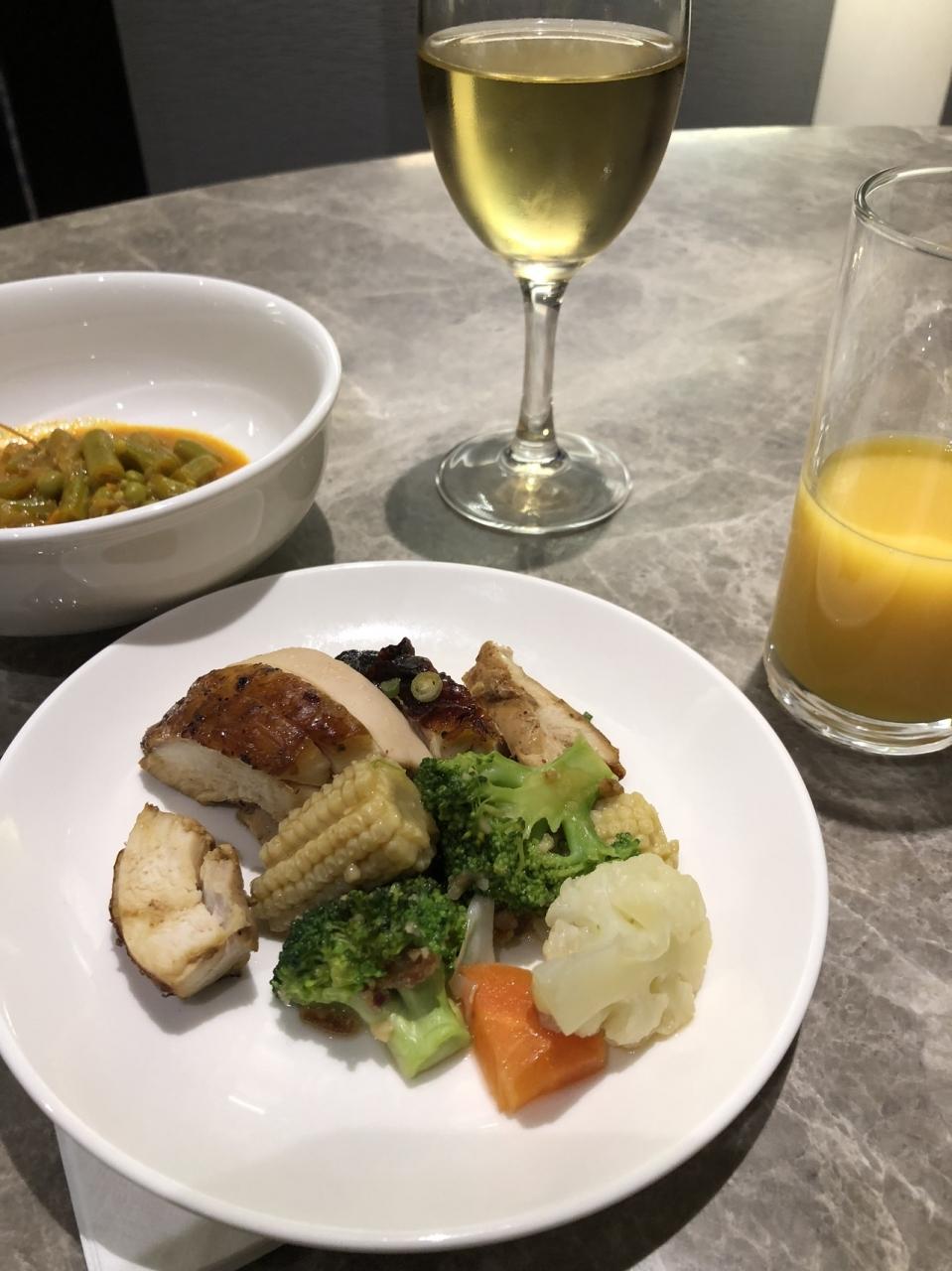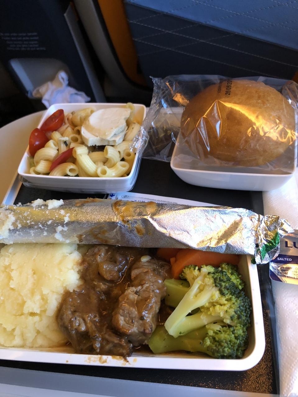 予約済みの、ビーフブリスケットの機内食を食べて、