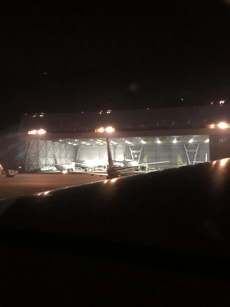 格納庫で、整備士さんは徹夜でメンテナンスしてるんだな….