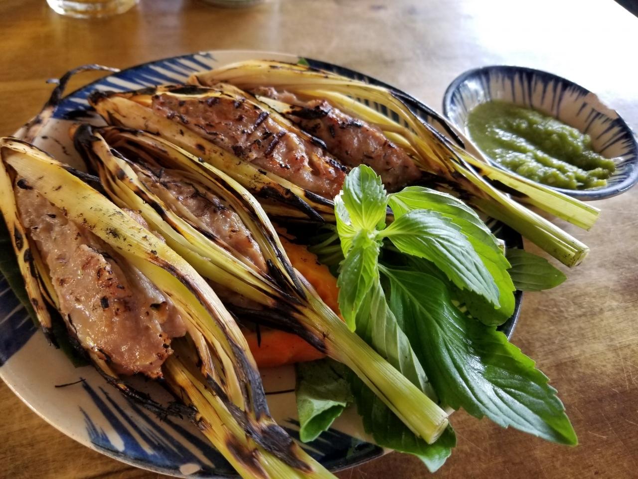 レモングラスの中にひき肉が入っていて、こんがりと焼いてあるやつ(名前あるのかな?)